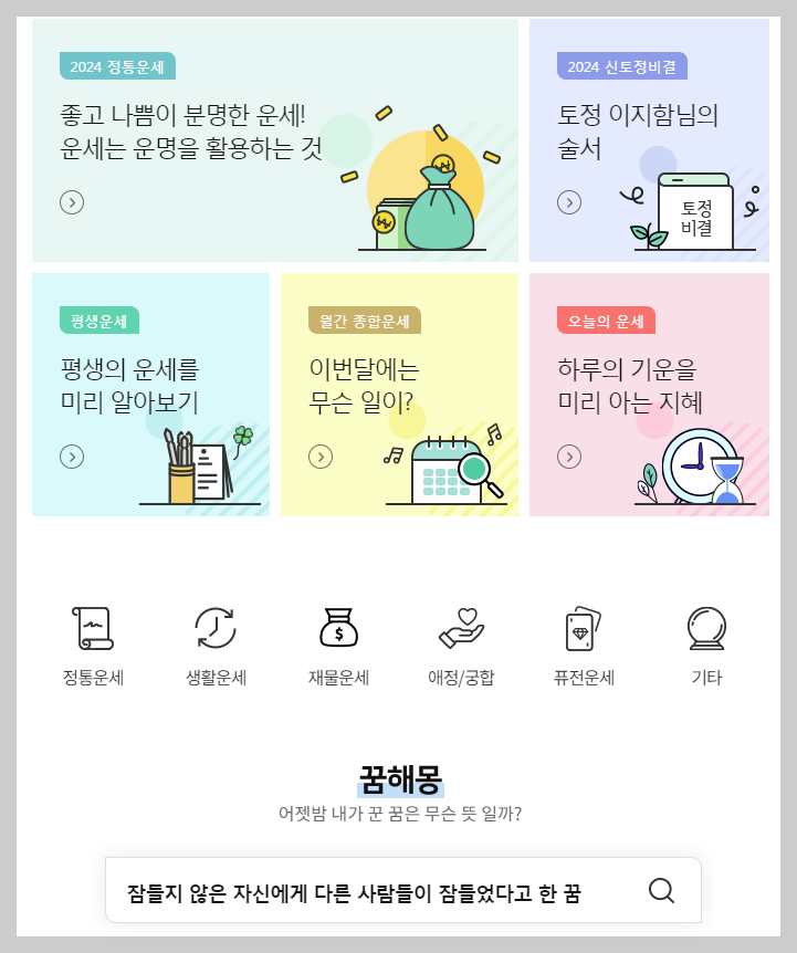꿈해몽도 있으니 전날 내가 꾼 꿈이 무슨 뜻일지 궁금하신 분들은 검색해 보시는 걸 추천드립니다.
